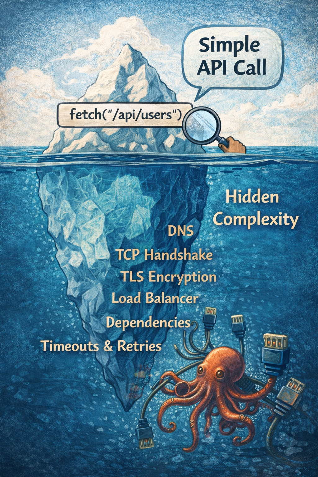 It’s name resolution, connection negotiation, encryption, routing, scheduling, IO, dependency coordination, and failure handling; all hidden behind a function call.